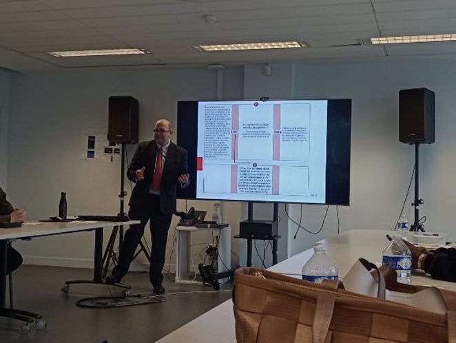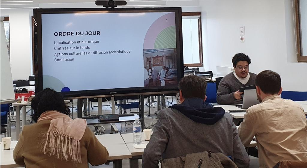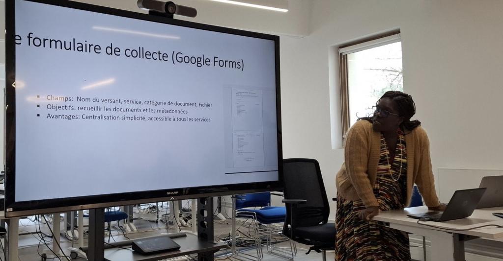 La journée a commencé dans une atmosphère studieuse à 9h15, lorsque Frédéric Goumont, adjoint à la cheffe de mission et responsable du pôle des archives définitives, a ouvert la séance. D’une voix calme mais assurée, il nous a entraînés au cœur d’un sujet fondamental pour le métier d’archiviste : l’élaboration d’un tableau de gestion.