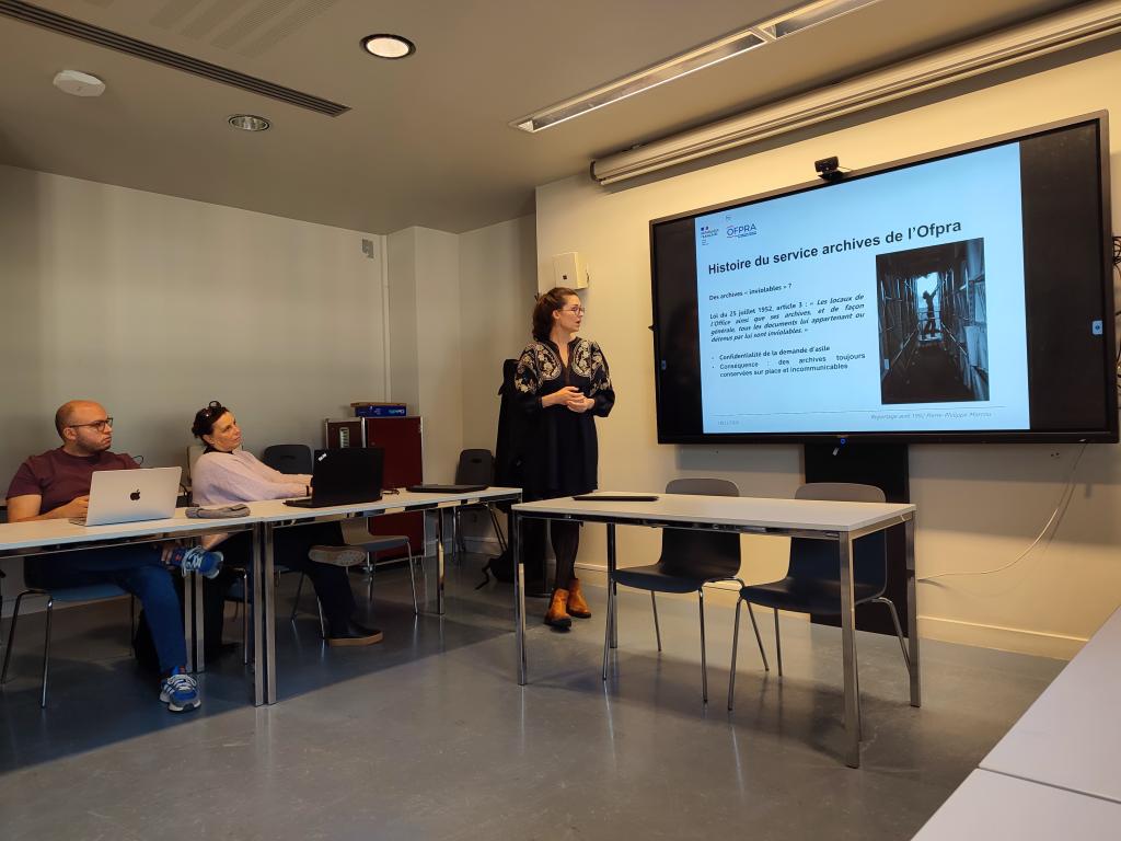Elle rappelle que les Archives de Paris ont été créé en 1985 et regroupent depuis 2019 les archives départementales et communales de la Ville de Paris. Elles conservent 81 km linéaires de documents répartis sur plusieurs sites, avec environ 70 agents couvrant toute la chaîne archivistique : collecte, traitement, conservation, communication, médiation, restauration et valorisation.
