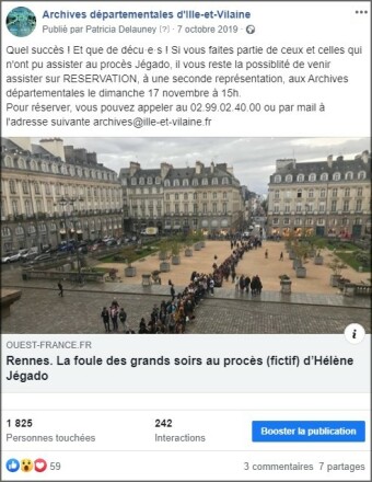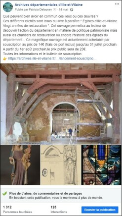 Publication pour promouvoir un ouvrage publié par les Archives départementales d'Ille-et-Vilaine