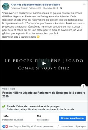 Publication du lien vers la captation du procès ramenant sur le compte Viméo des Archives
