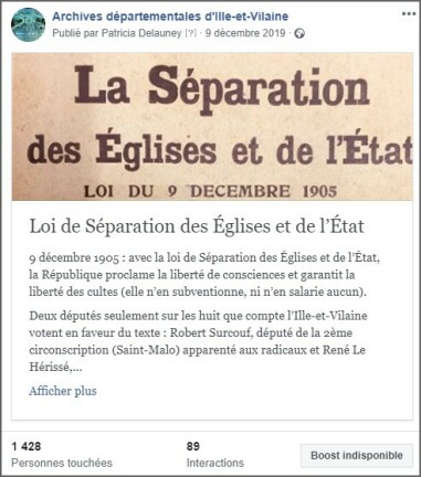 Exemples de publication du compte Facebook des Archives départementales d'Ille-et-Vilaine