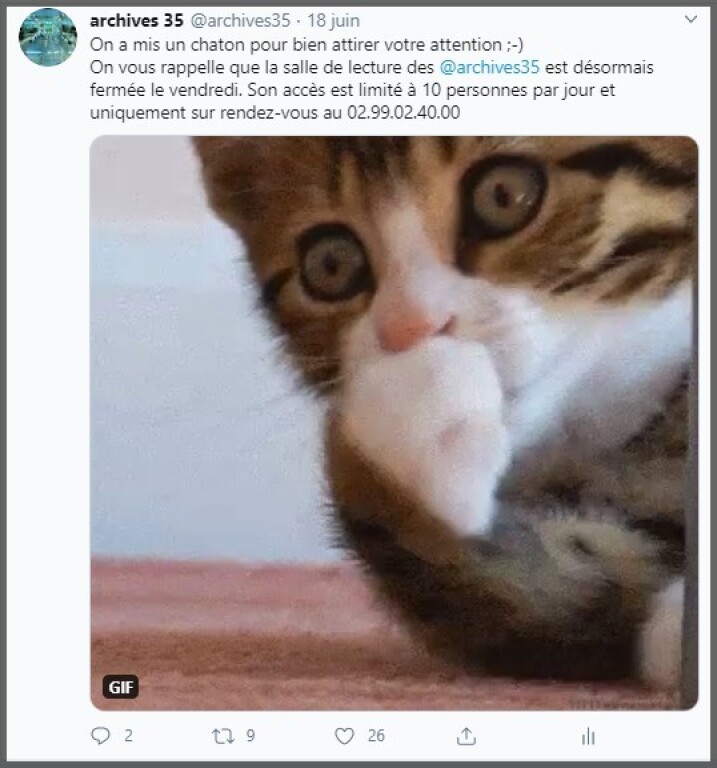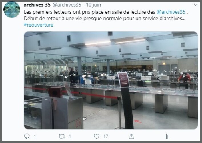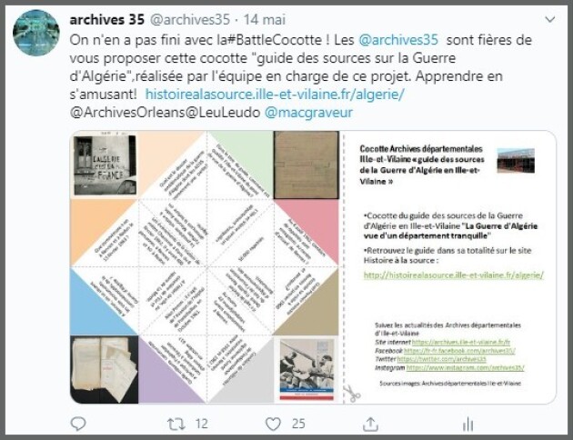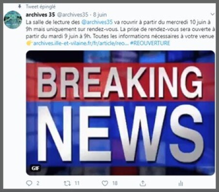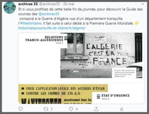 Annexe 1 : exemples de tweets extraits du compte twitter/X des Archives départementales de l'Ille-et-Vilaine